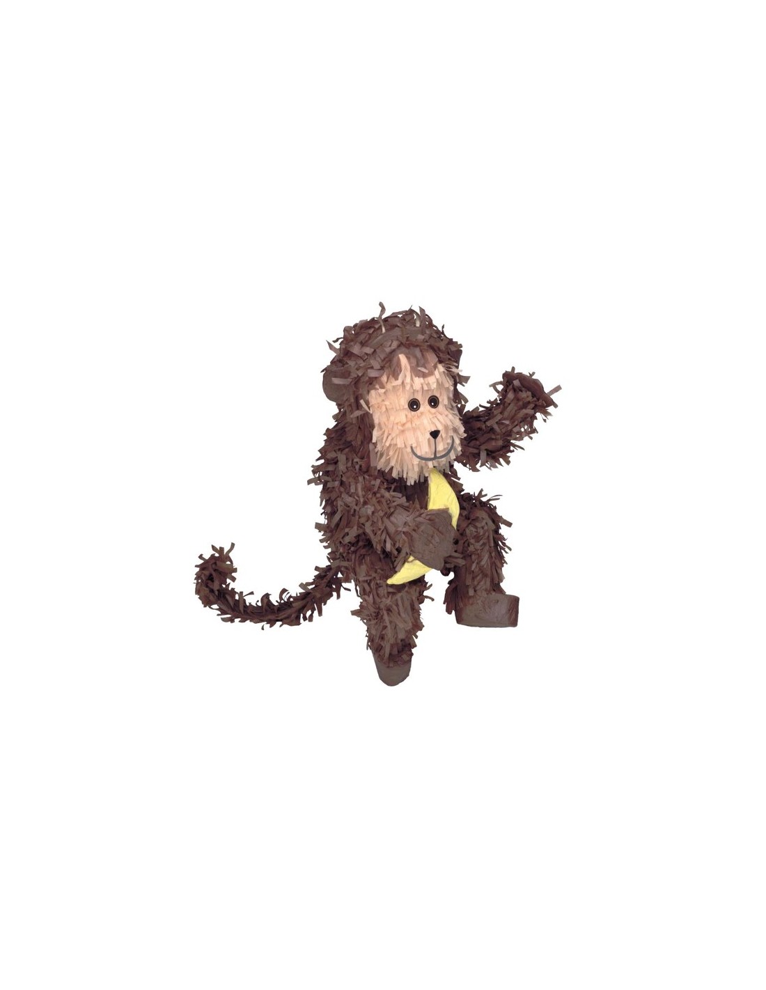 Cette pinata représente un adorable singe de couleur marron avec un visage beige, de grands yeux marron expressifs et une banane dans sa patte. Amusante et chaleureuse, elle est parfaite pour une fête sur le thème des animaux ou de la jungle.